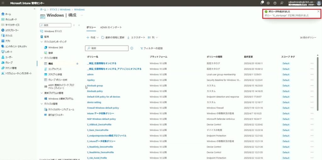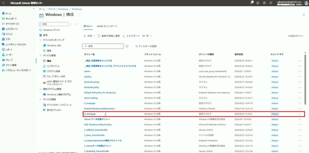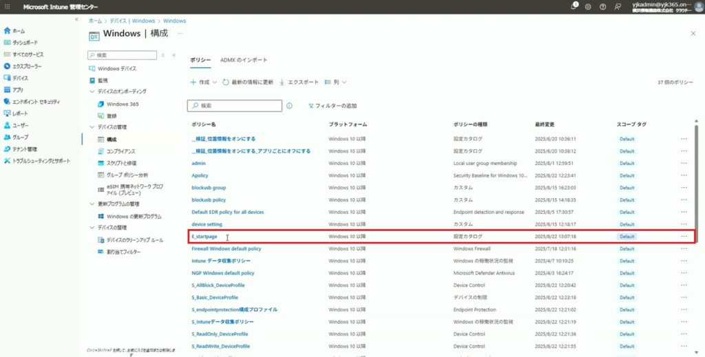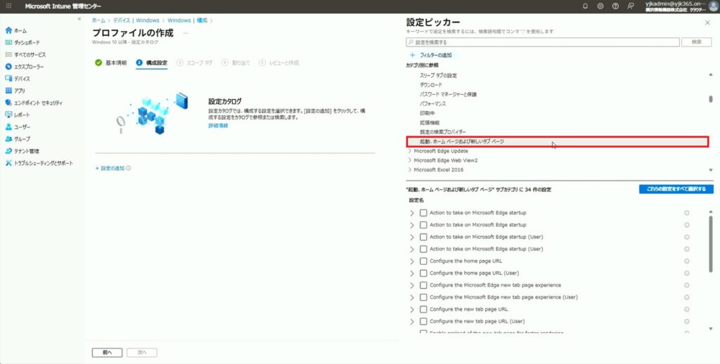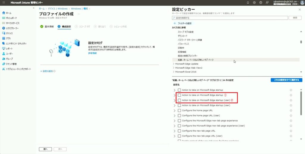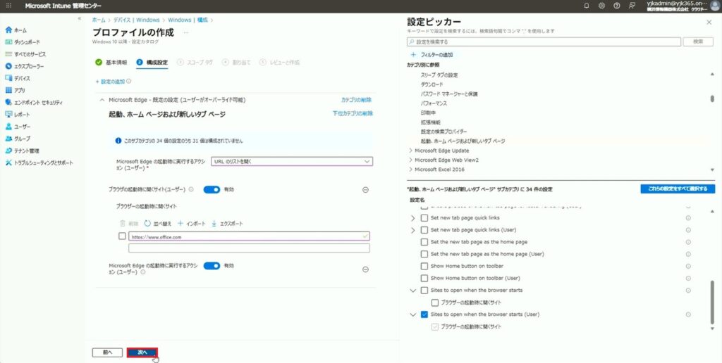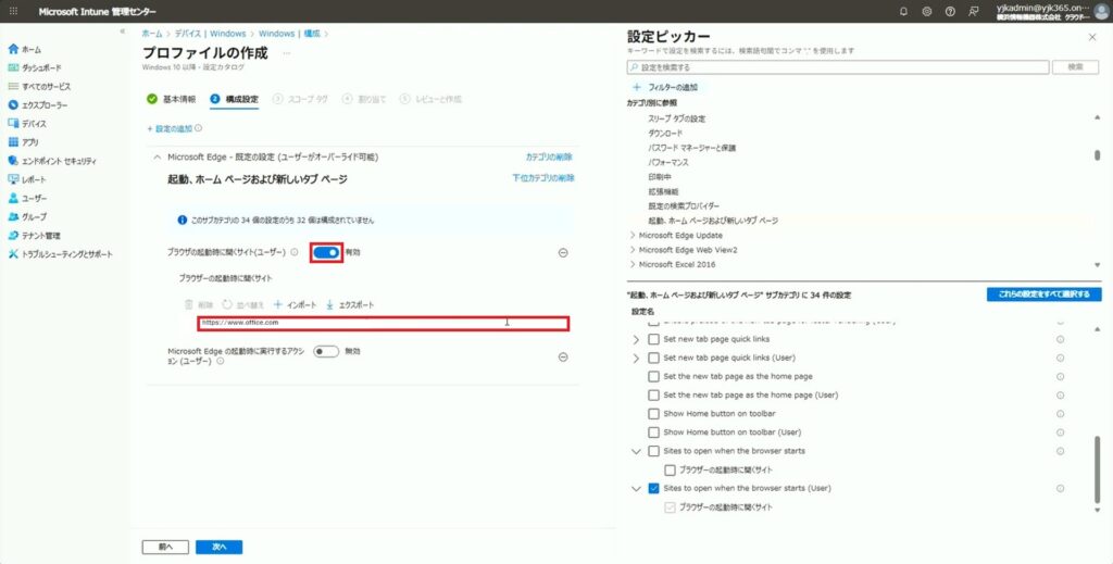 | Action to take on Microsoft Edge startup (Device) | デバイス | デバイスに適用 |