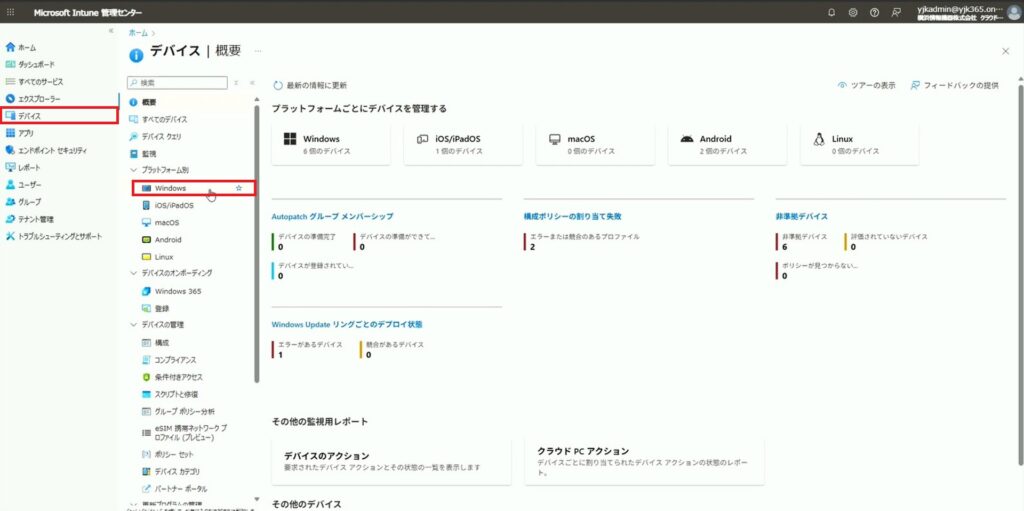 2.「デバイス」をクリックし、「Windows」をクリックします。