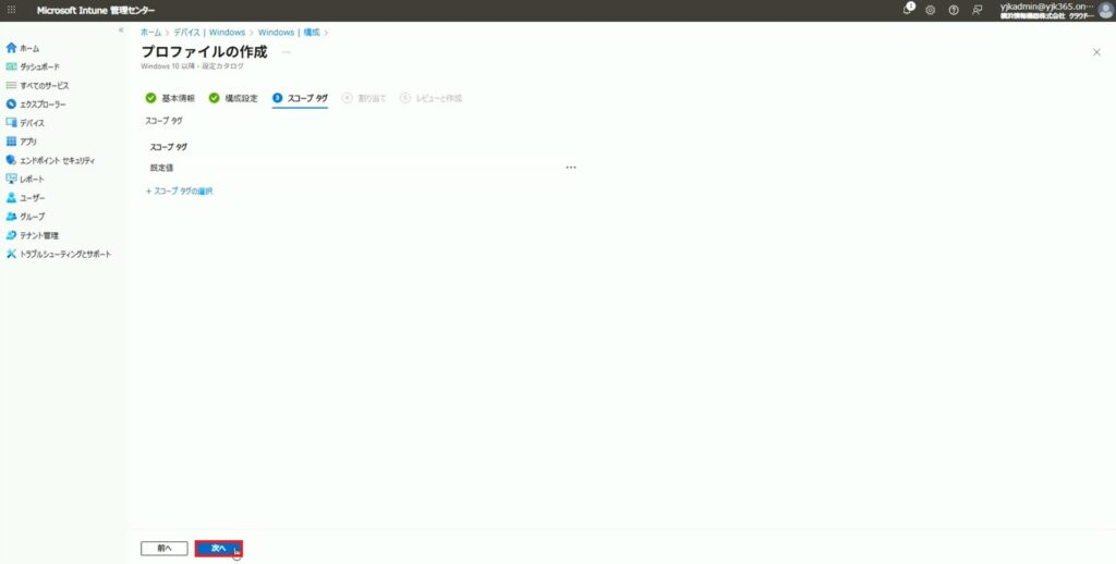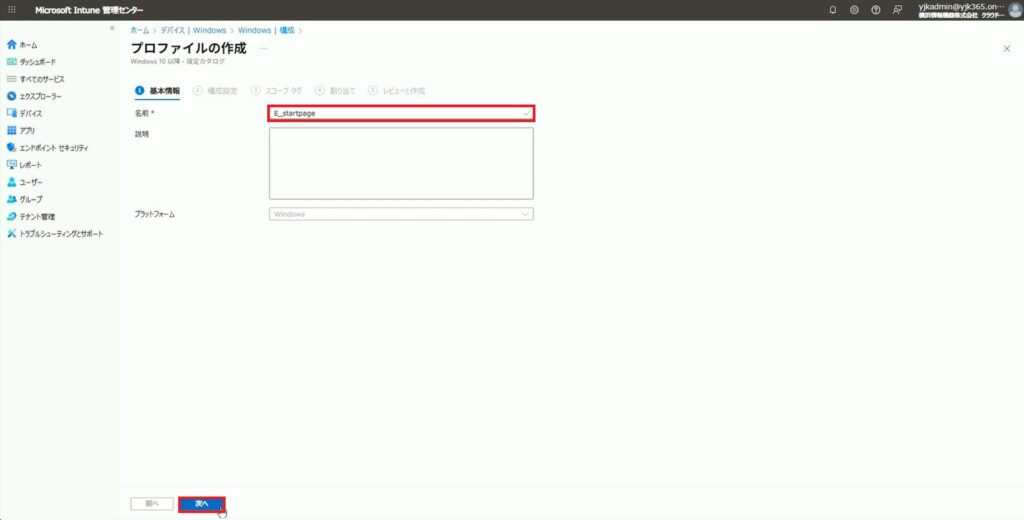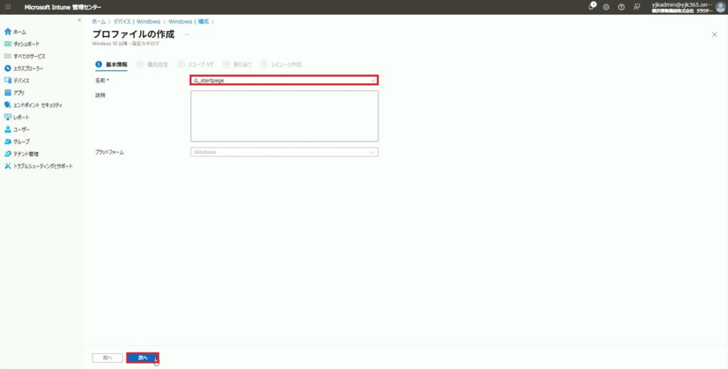 3.プロファイル名を入力し、「次へ」をクリックします。