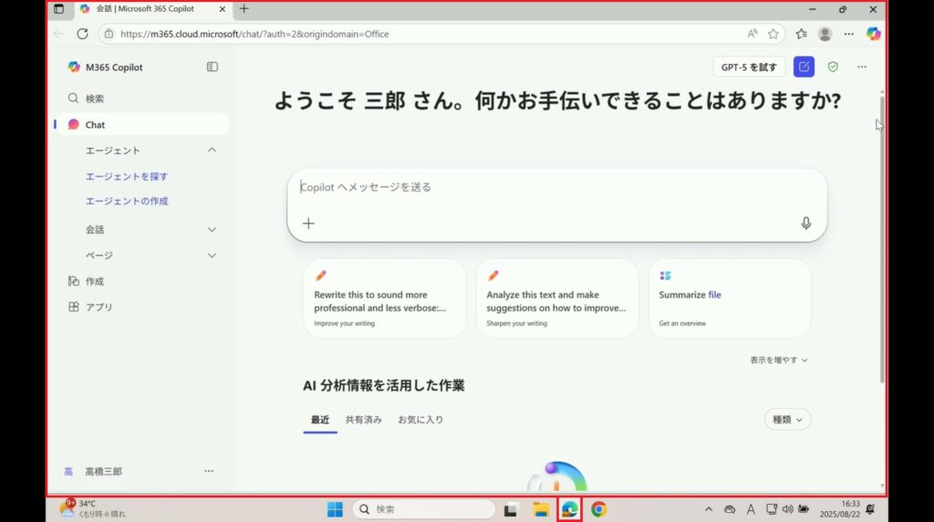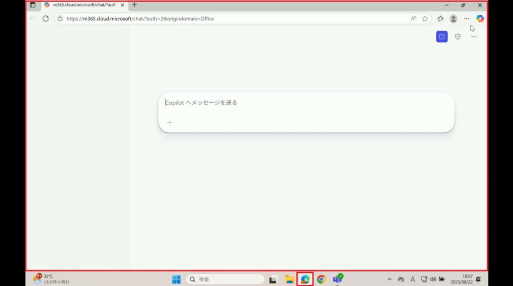 Edgeを立ち上げると、先ほどスタートページに指定したURLが開きました。
