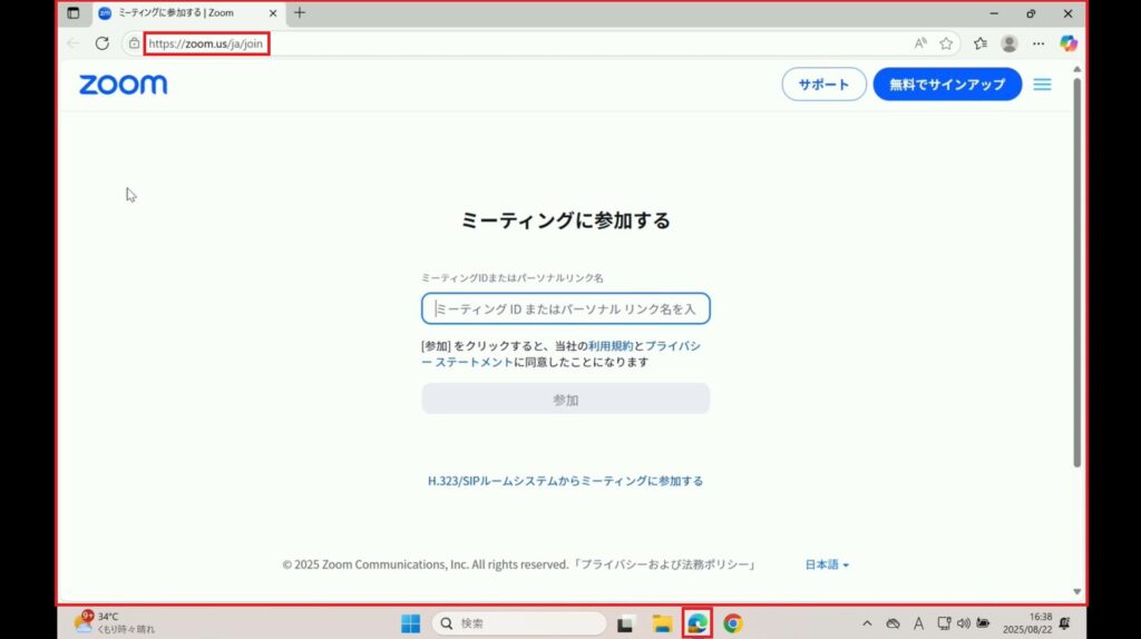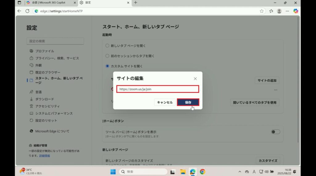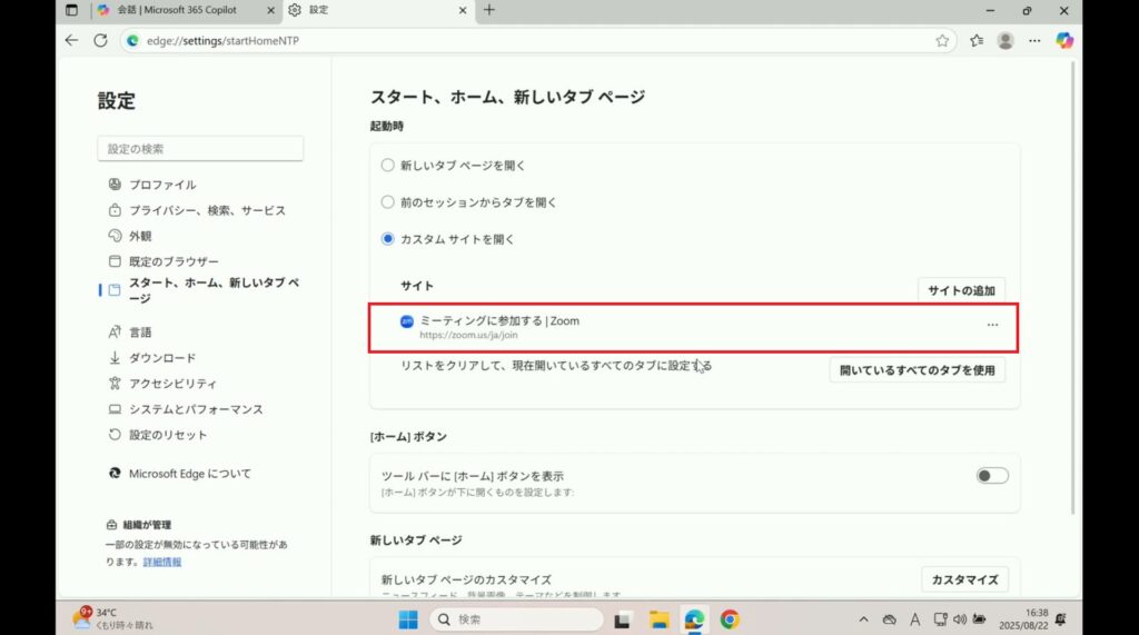 Edgeを再度立ち上げると、変更したZoomのURLがスタートページになりました。