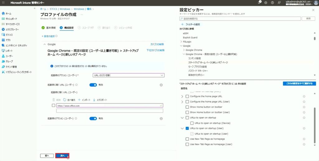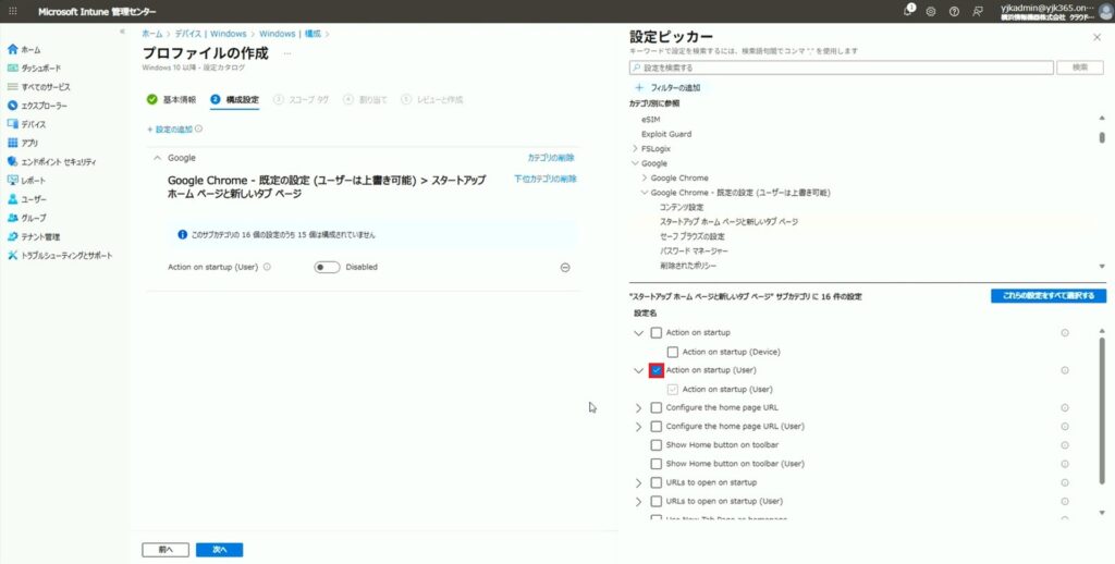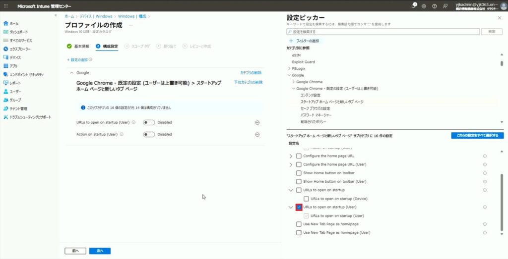※Chromeは「強制」か「推奨」をカテゴリで選択し、あとは「デバイス or ユーザー」選択したとおりに進めていくとうまく設定できます。