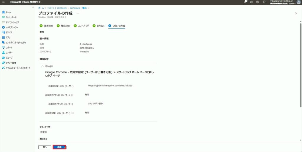 15.ポリシー内容を確認し、「作成」をクリックします。