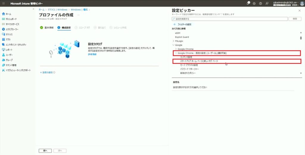今回は、Intuneの「設定ピッカー」を使用してプロファイルを作成します。