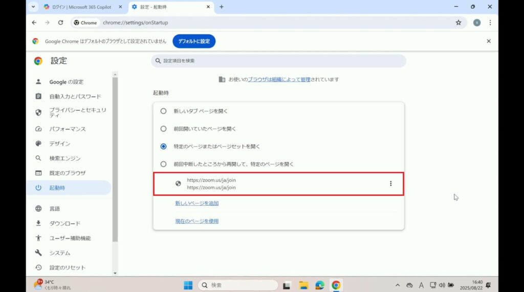Chromeを閉じて、再度立ち上げると、変更したZoomのURLがスタートページになりました。