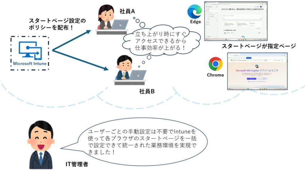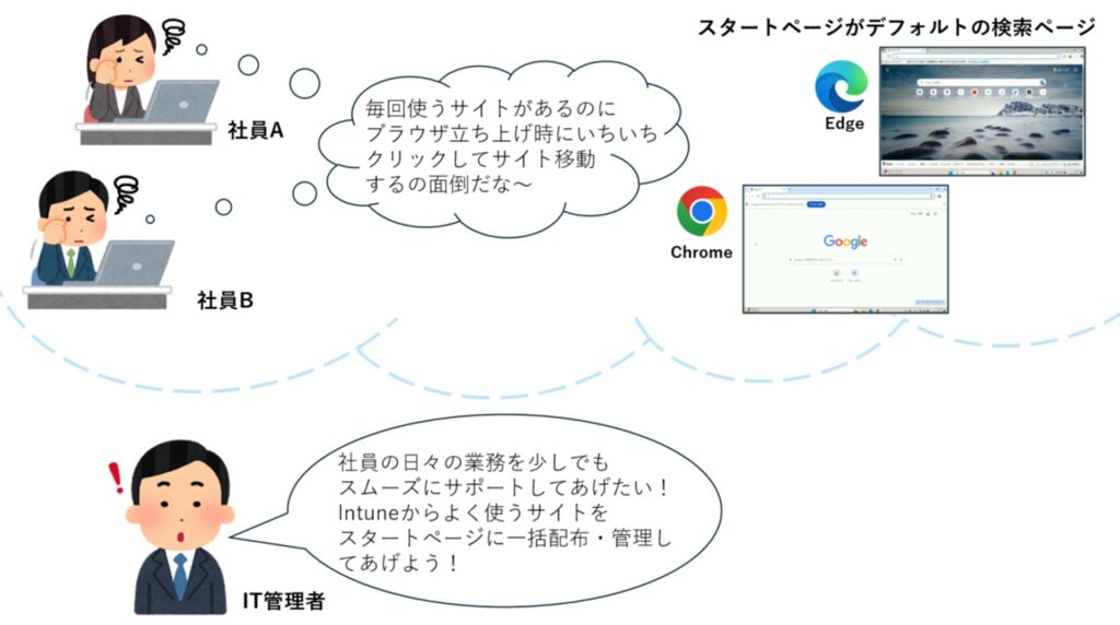 この記事では「Microsoft Intuneを使用して、Microsoft EdgeやGoogle Chromeのスタートページを一括で設定する方法」をご紹介します。