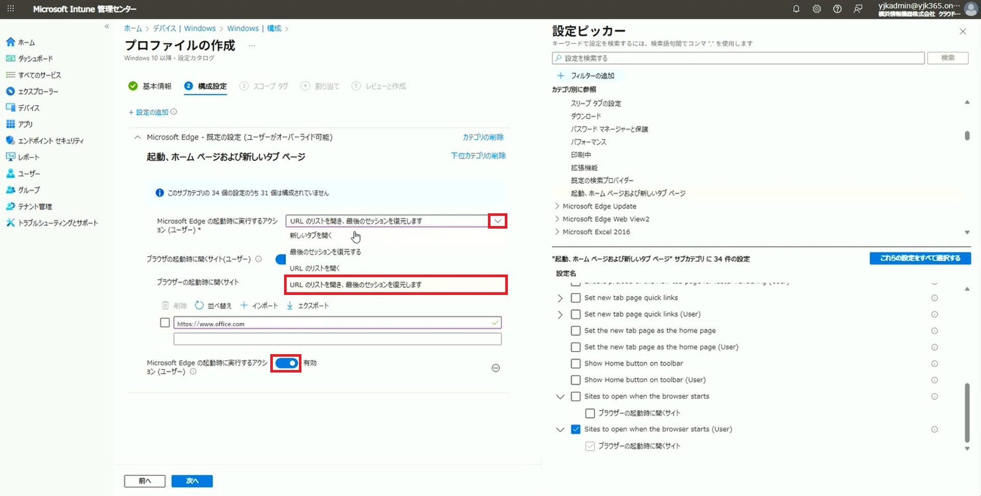 IntuneでEdgeとChromeのスタートページを設定する方法