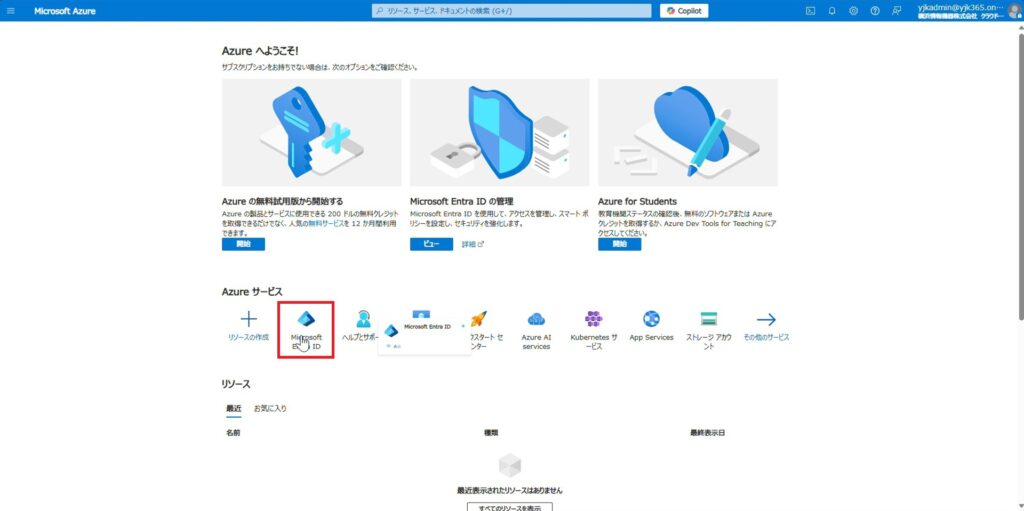 1.Microsoft Azure Portalから「Microsoft Entra ID」をクリックします。