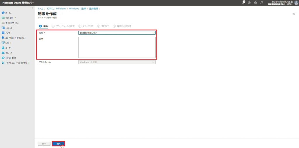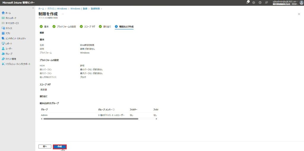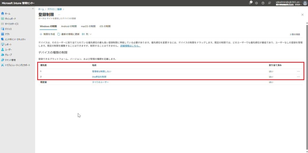優先度2: Entra参加を制限するプロファイル