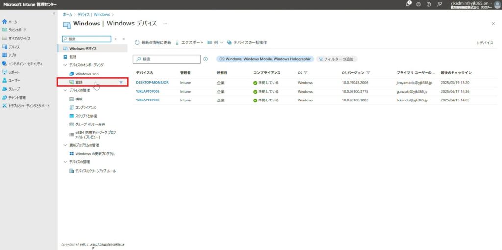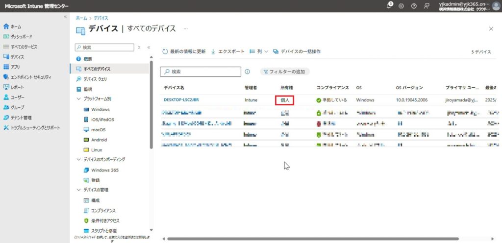 5.Microsoft Intune 管理センターからも個人デバイスとして登録されていることを確認できました。