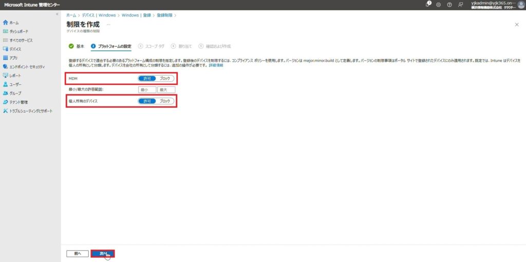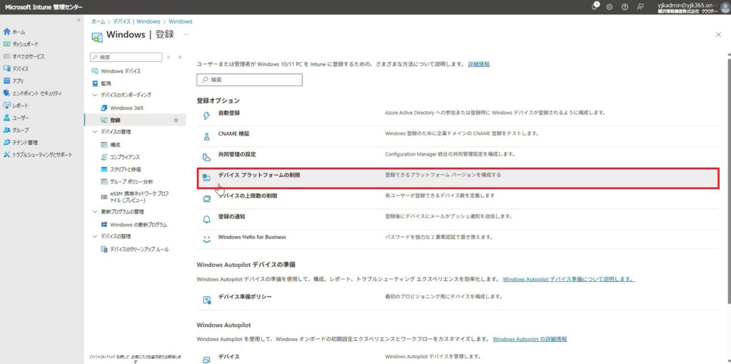 ① Microsoft Intuneへの自動登録を構成