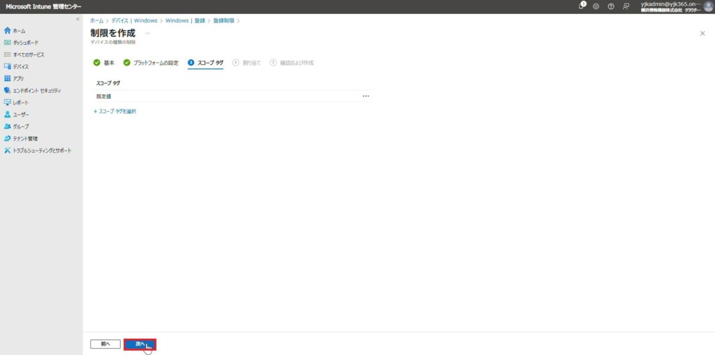 4.スコープ タグタブでは何も変更せず、「次へ」をクリックします。