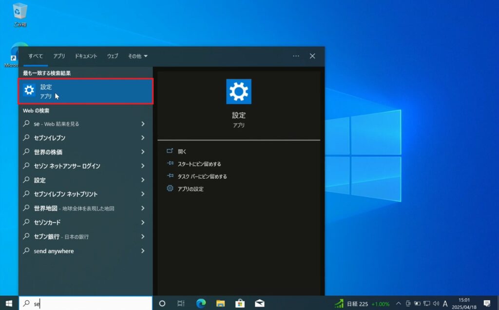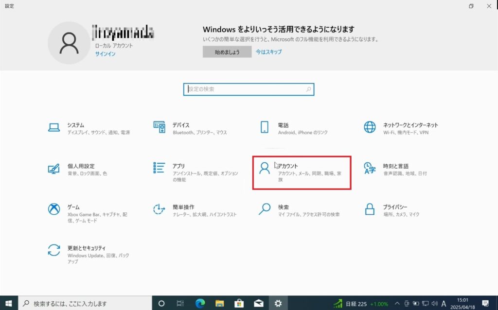 1.Entra参加していないデバイスから「設定」を開きます。
