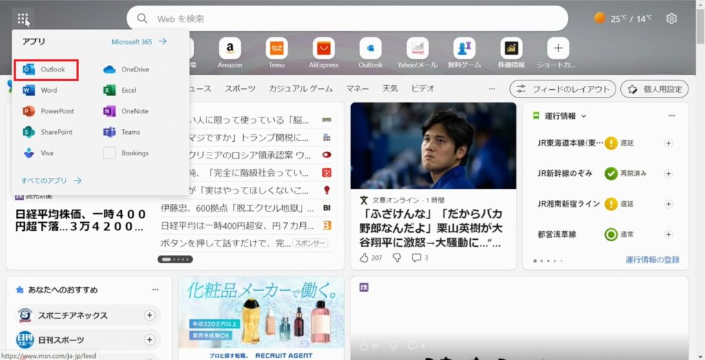 Microsoft Edgeを開き、Outlookを開きます。