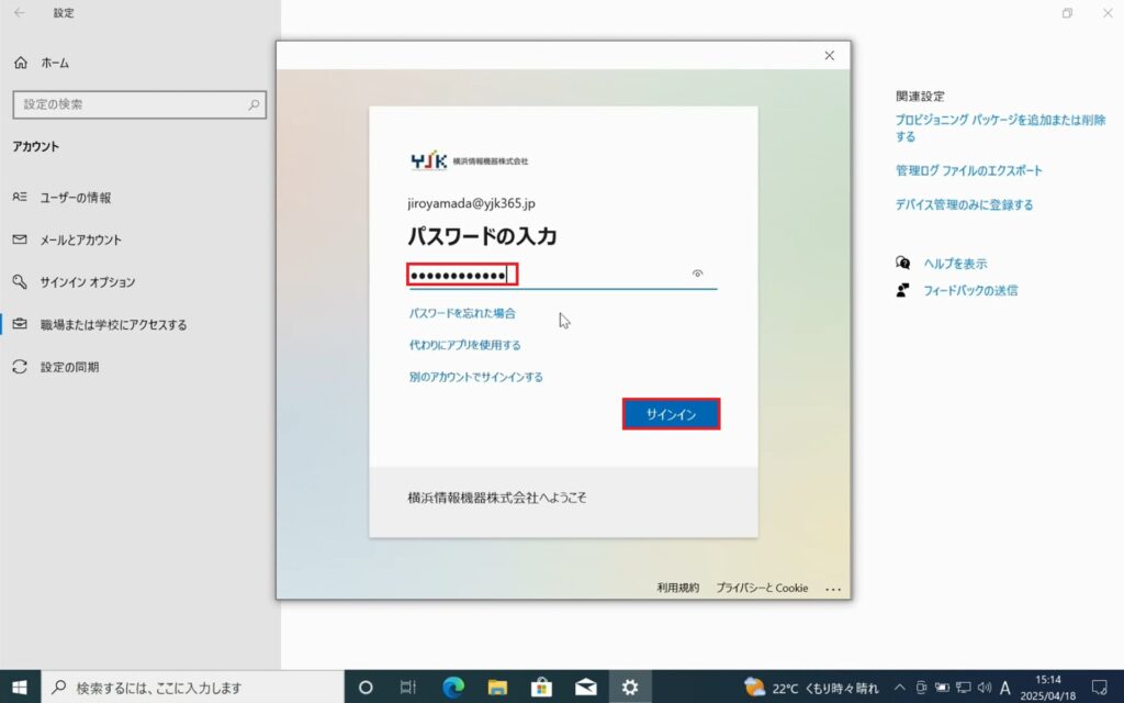 2.パスワードを入力し、「サインイン」をクリックします。