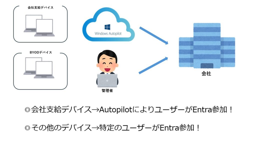 標準的なデバイスは Autopilotを利用してユーザー駆動によるEntra参加。