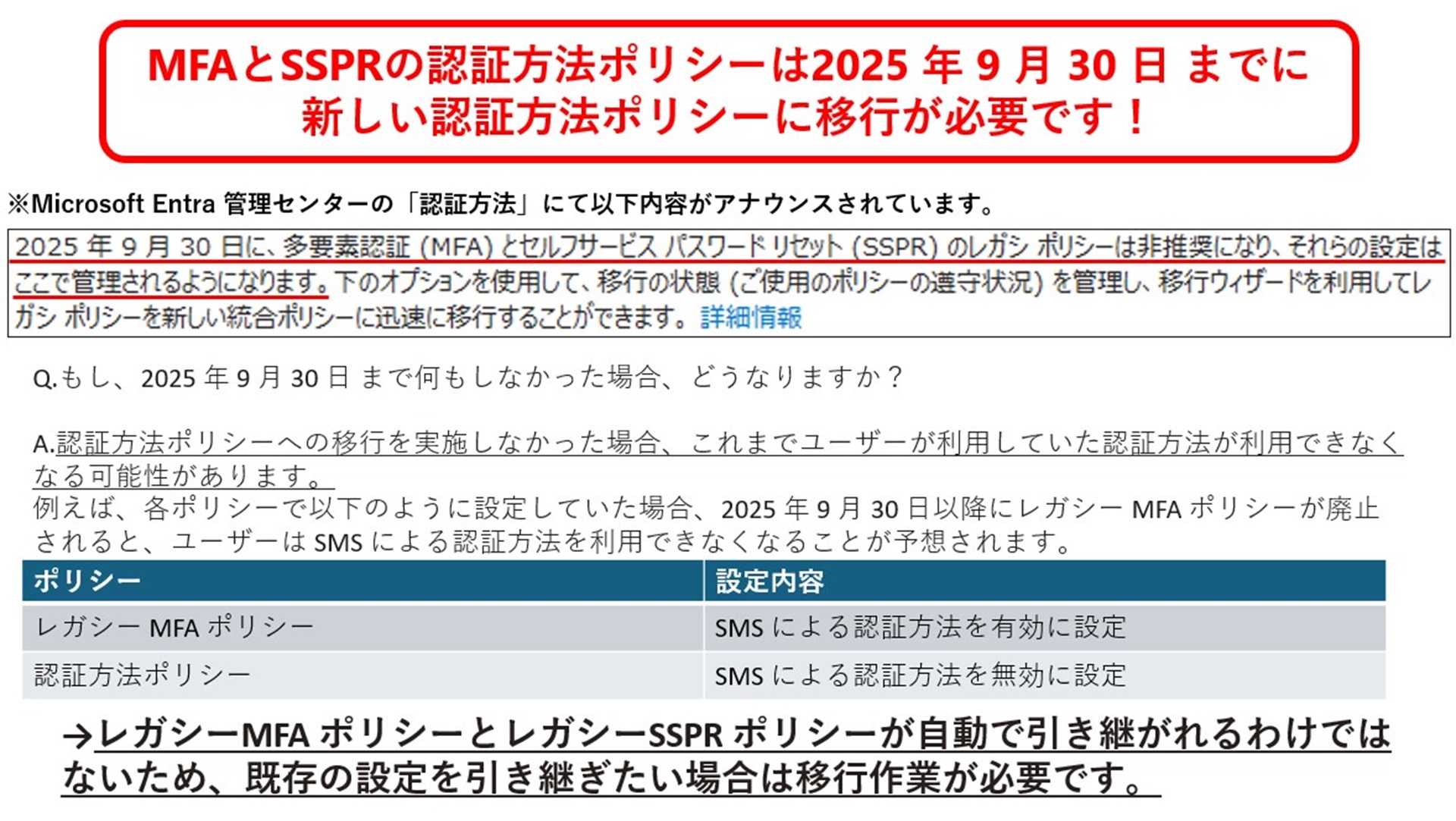 多要素認証(MFA)とセルフパスワードリセット(SSPR)を新しい認証方法ポリシーに移行する方法