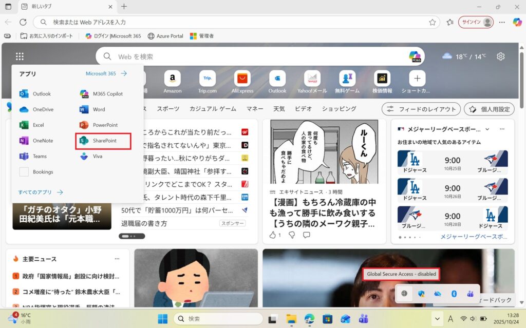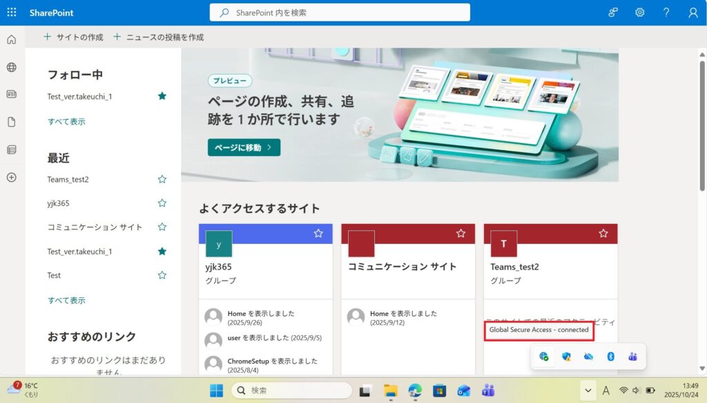 SharePointへアクセスができました。