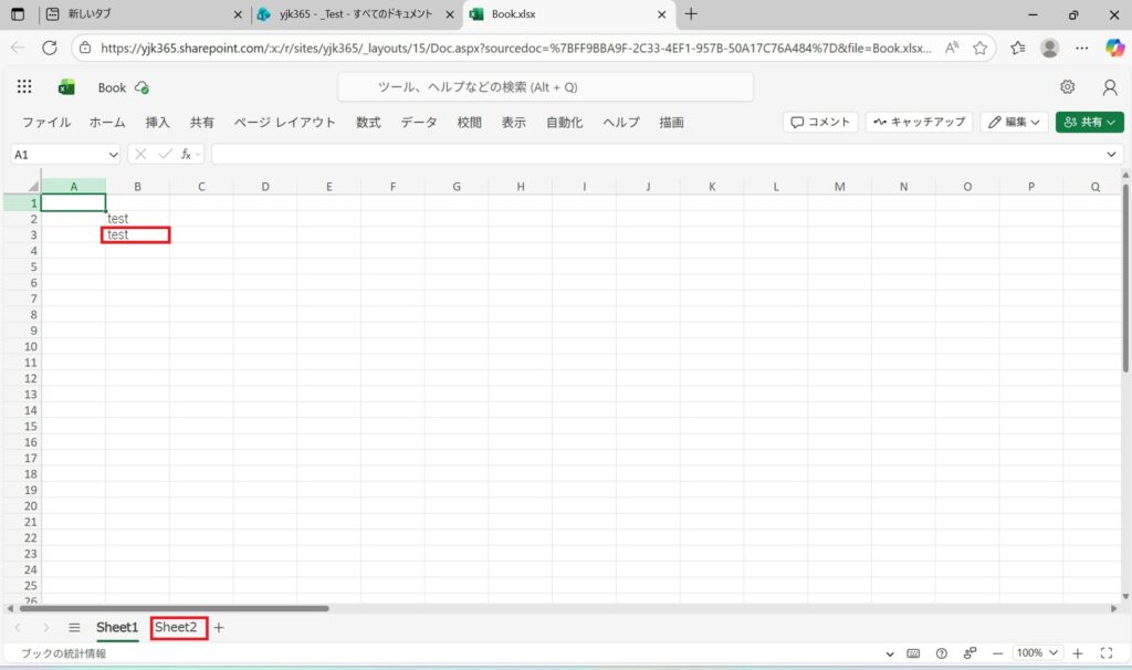 SharePointにGSAがオンの状態でアクセスしExcelを用意します。