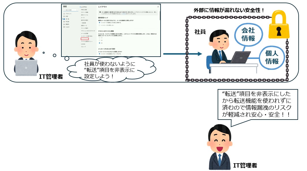 Outlook on the web (OWA) の転送設定を非表示にする方法 内で公開