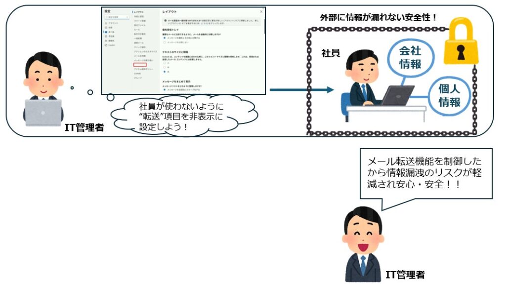 Outlook on the web (OWA) の転送設定を非表示にする方法 内で公開