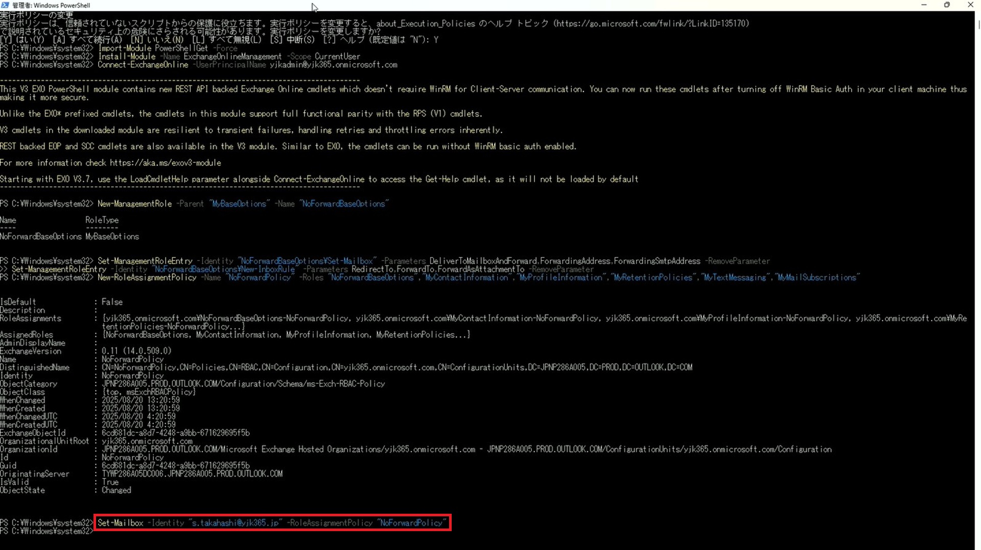 Outlook on the web (OWA) の転送設定を非表示にする方法