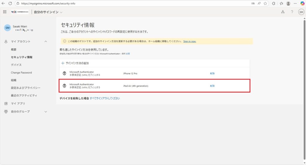 外部テナントでも Microsoft Authenticator を利用している場合、注意が必要です。