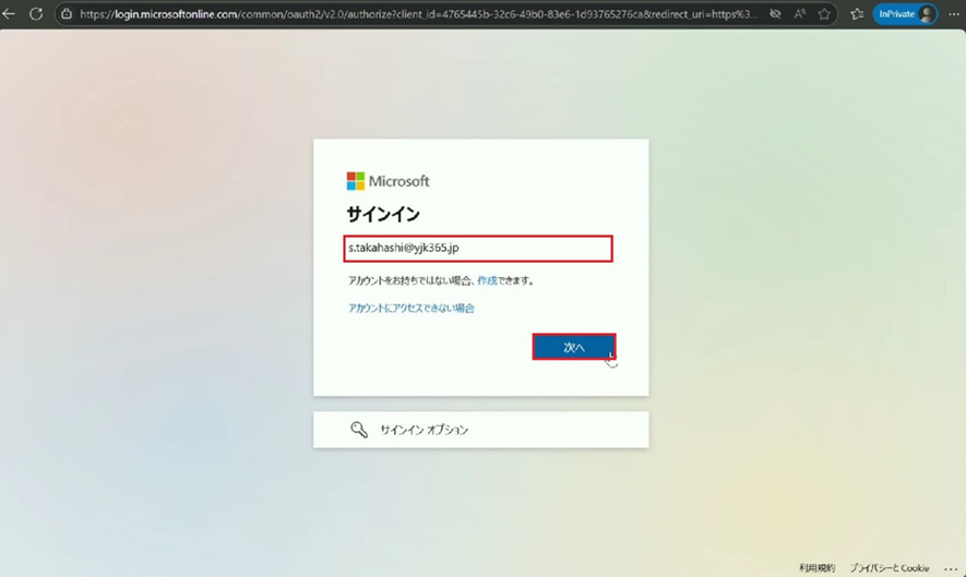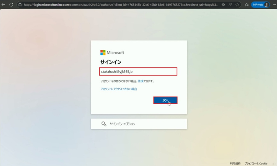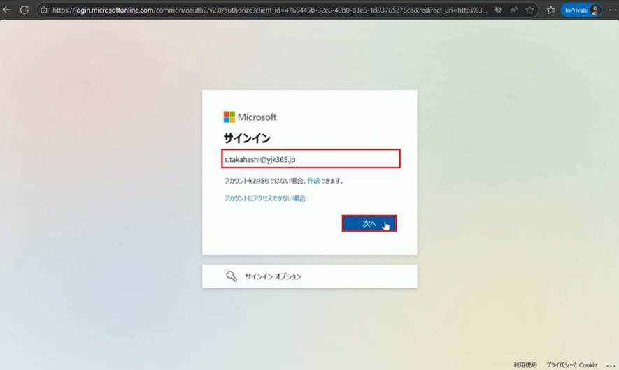 4.該当のユーザーは「https://www.office.com」にアクセスし、「サインイン」をクリックします。