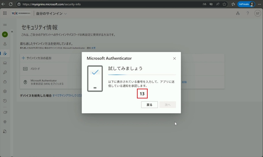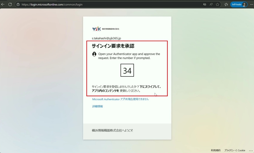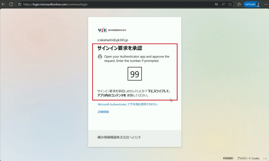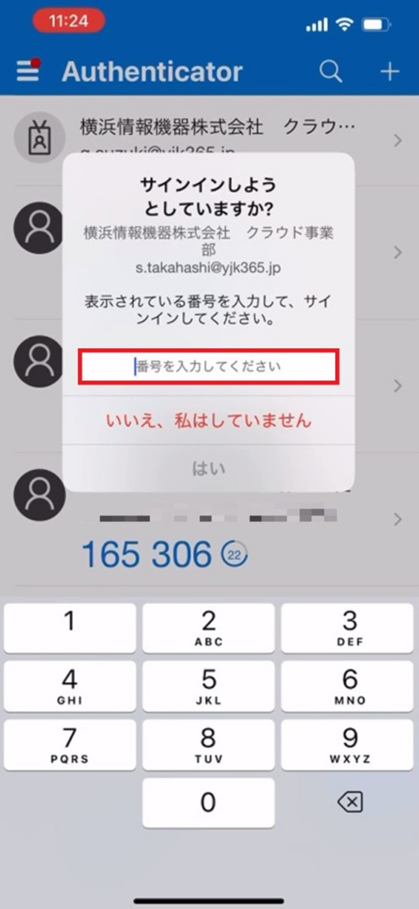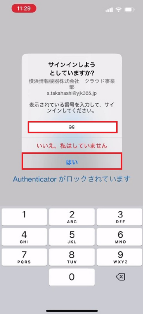 17.新しいスマホのAuthenticatorアプリに、表示された番号を入力し「はい」をタップします。