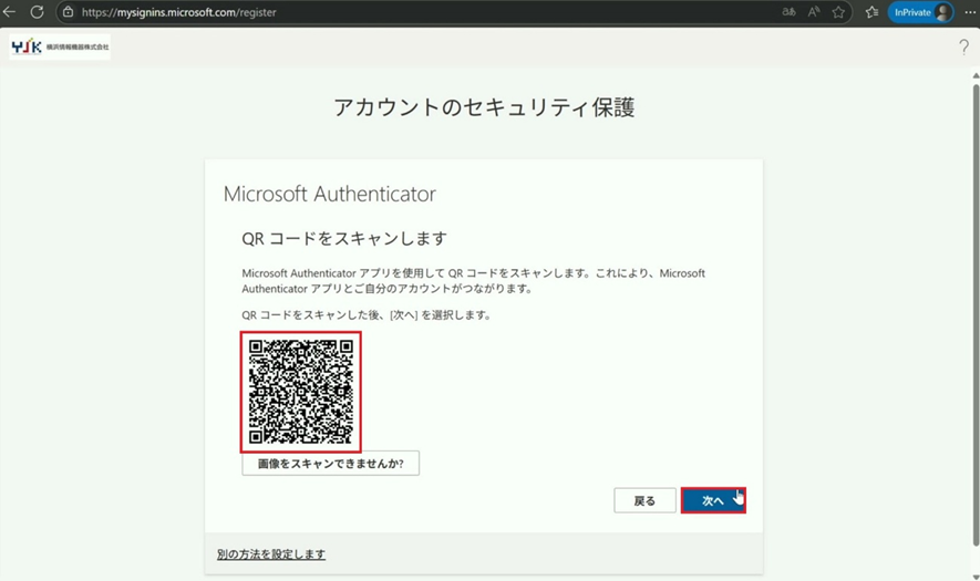 15.QRコードを読み取り後、「次へ」をクリックします。