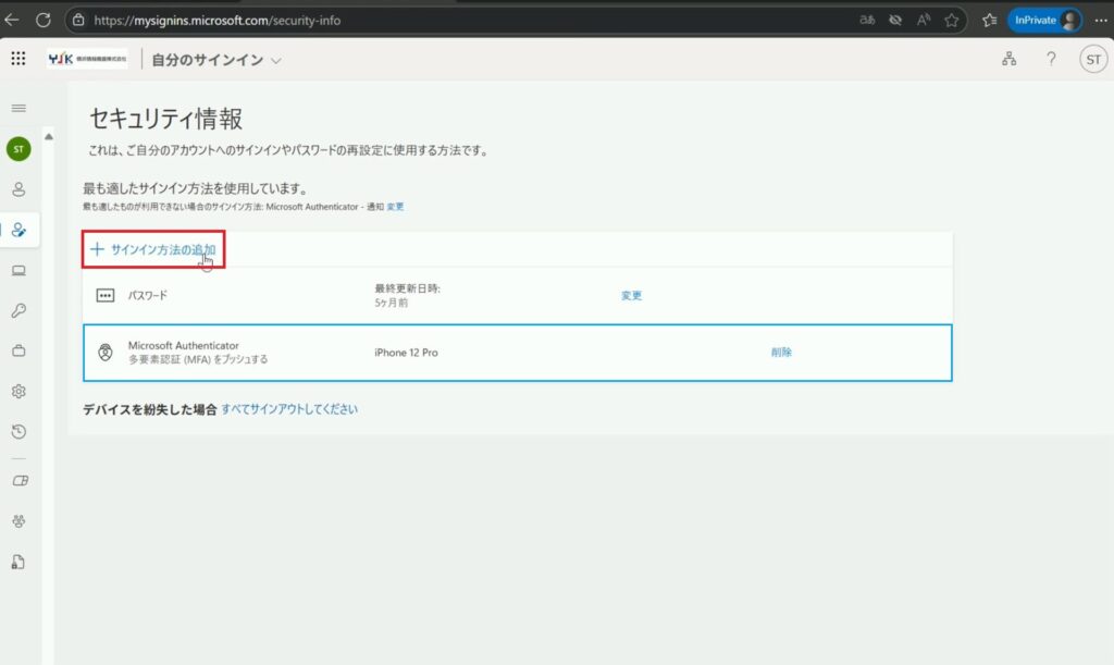 ※青枠内を見ると、現在はMicrosoft Authenticatorに古いスマホが登録されていることがわかります。(後ほど手順21 で削除します)