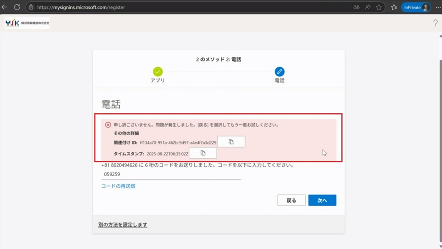 SMSでMFA登録時に発生するエラーを防ぐ方法  内で公開