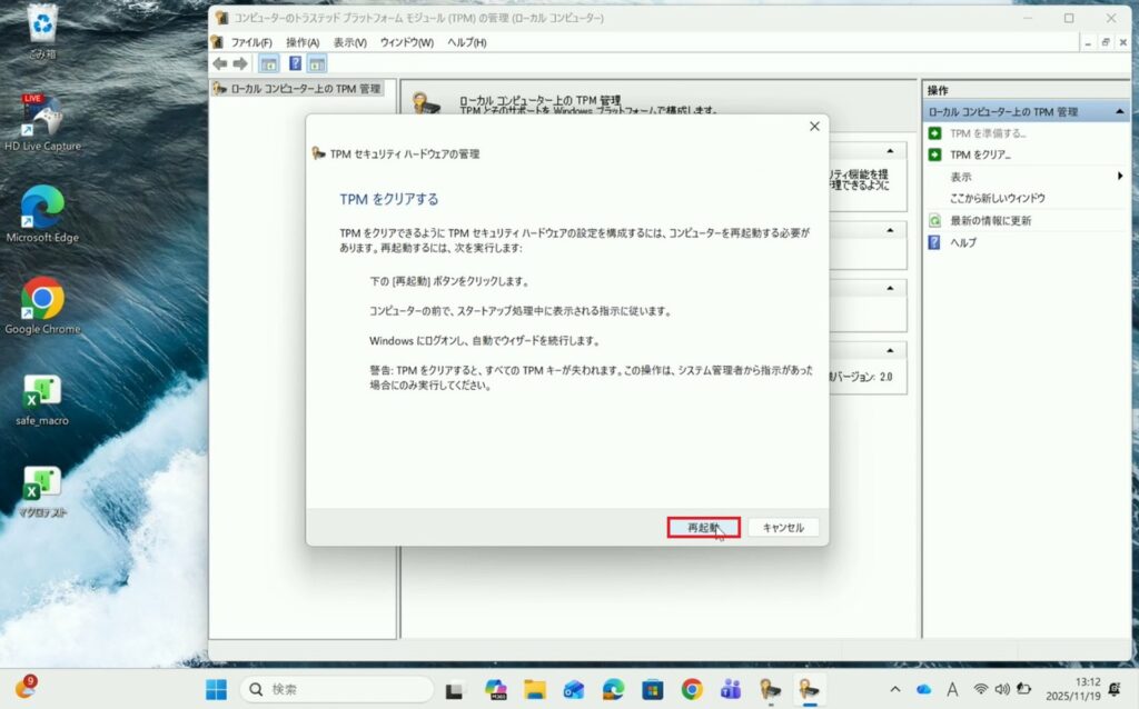 そのため、TPMを「クリア(=初期化)」して、保存されている情報を完全に削除する必要があります。クリアすることで、次の利用者や新しいOS環境で安全に使える状態になります。