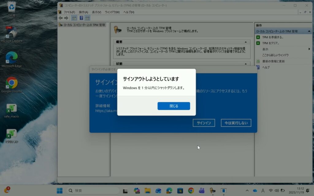 | 原因 | TPMは暗号化キーや認証情報を安全に保管する役割を持っています。そのため、同期に暗号化や認証が関わる場合(例:Microsoftアカウント、Azure AD、企業のドメイン環境)、TPMの不具合が原因で同期ができないことがあります。 TPMが壊れている、または古い情報が残っていて新しい環境と競合していたら同期失敗になりうる可能性があります。 |