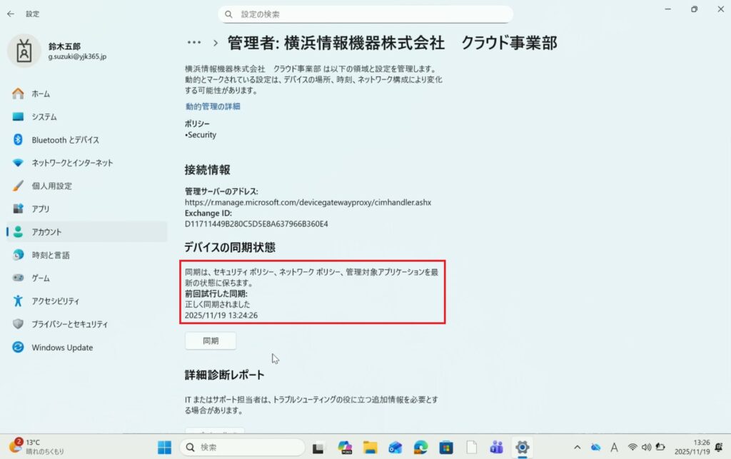 ※同期完了までは 10 分ほどかかりました。最大 1 日かかる場合もあります。
