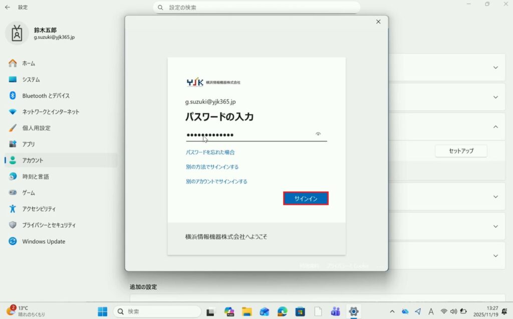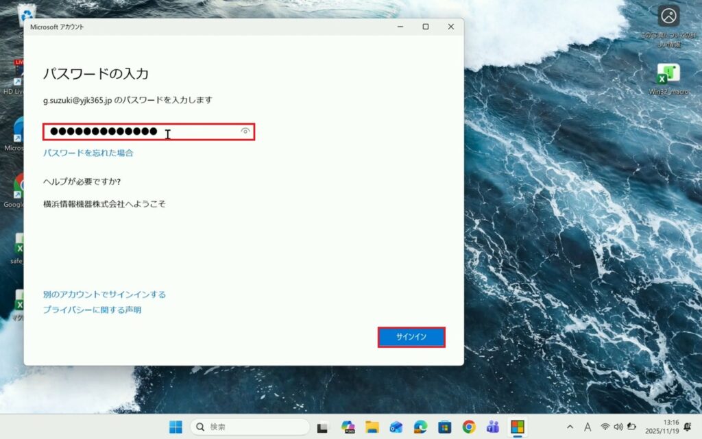 11.「パスワード」を入力し「サインイン」をクリックします。