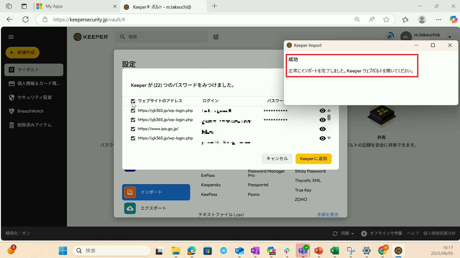 ブラウザのパスワードマネージャに保存されているパスワードをKEEPERへ移行する方法 内で公開