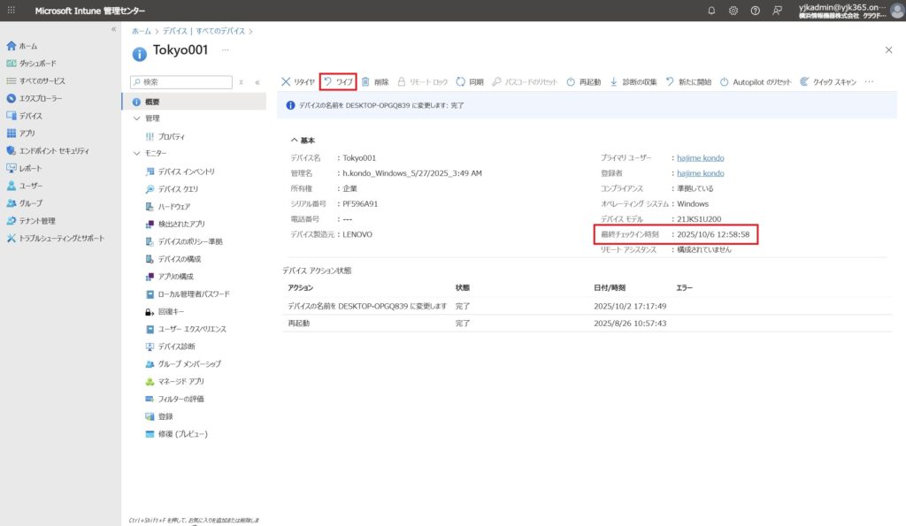 ・管理者はIntuneポータルから遠隔で状態確認・管理可能